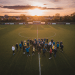 Wiedergründung des Vereins. Die Fußballmannschaft nimmt den Spielbetrieb auf, die Vereinsfarben sind blau-weiß